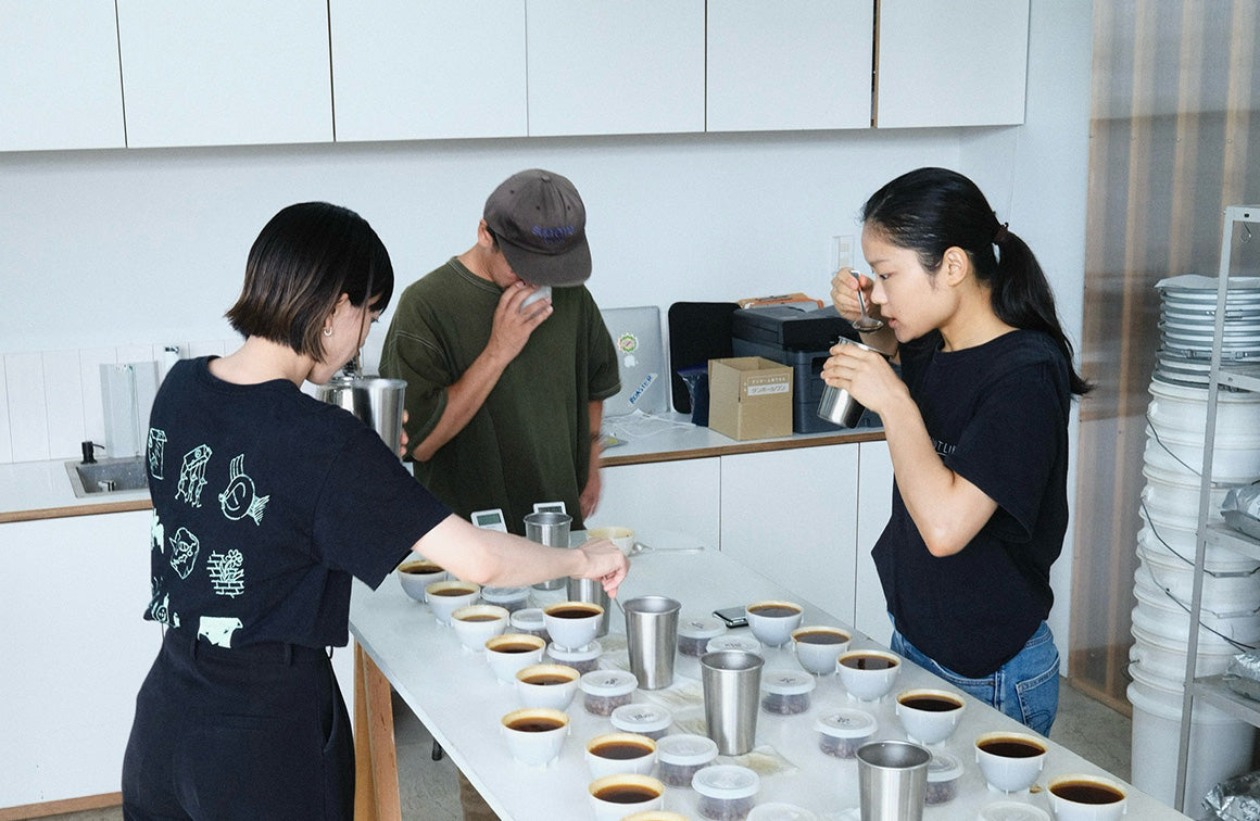 焙煎した全てのコーヒーは、週に一度ロースターチームがクオリティチェックをします。カッピングをしながらディスカッションを行い、より良い焙煎を目指しています。