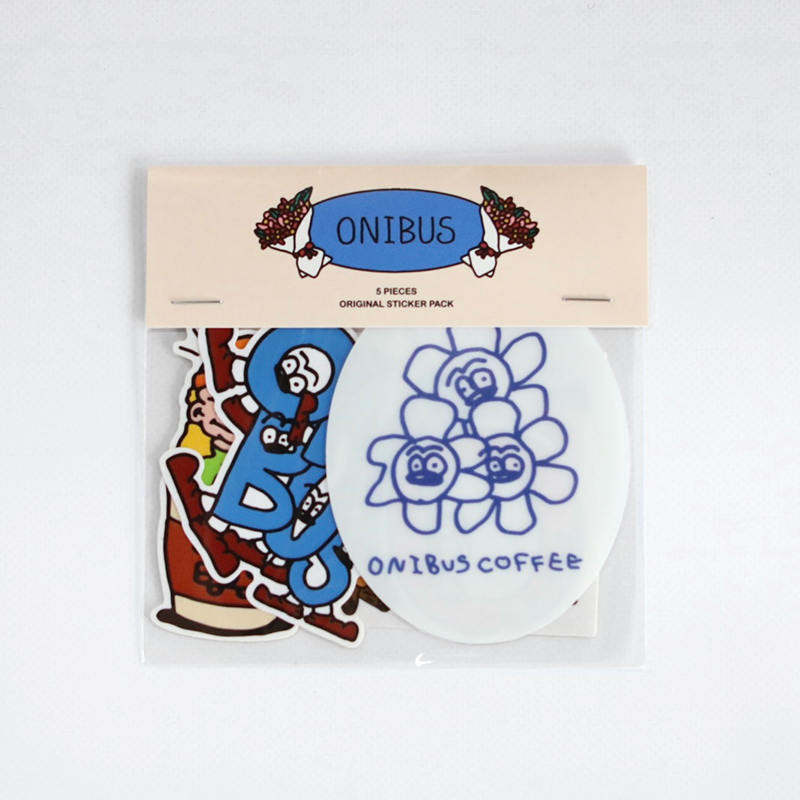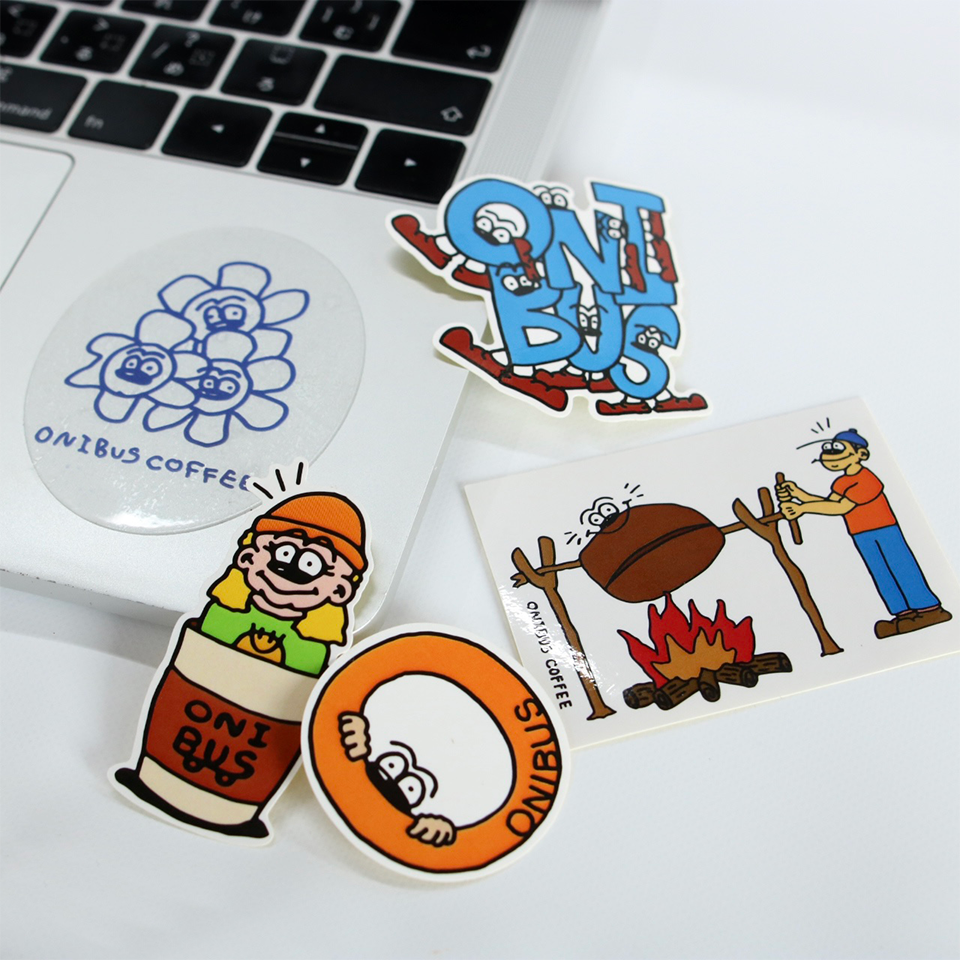 ONIBUS オリジナルステッカー。ONIBUS COFFEE 中目黒駅前店の9周年グッズのデザインを手掛けたYutaka Kobayashi (ユタカ コバヤシ)さんによる描き下ろしです!